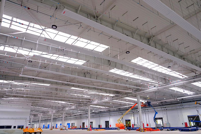 全新的低矮型高大空間冷暖空氣處理機應用武漢中車組裝車間,全新的數字直流了解更多